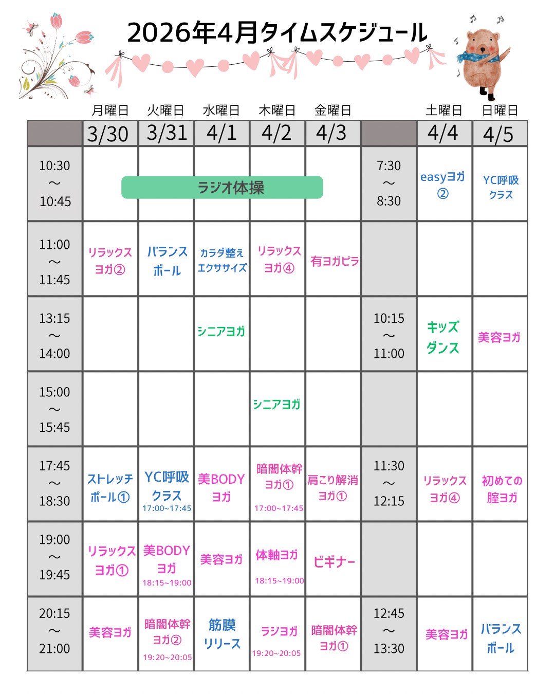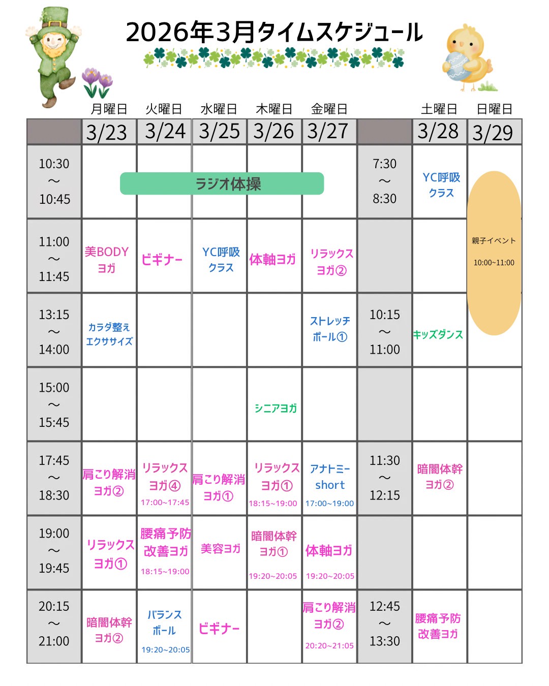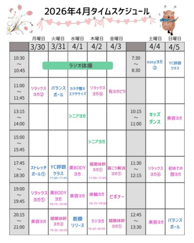 3/23~4/5のレッスンスケジュールは