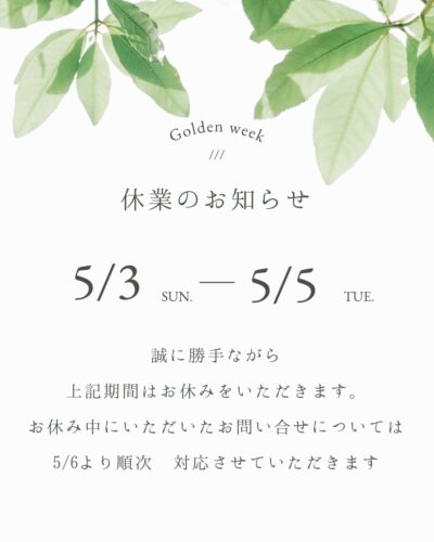 5月6日(水)以降順次対応させていただきます。